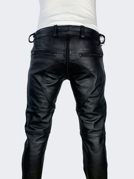 🖤 Handcrafted from 100% aniline full-grain cowhide leather (1.0–1.1 mm thick), these leather pants men trust are built for structure, durability, and supple fetish comfort. The sleek leather gay silhouette hugs your thighs and seat while offering the perfect base for your BLUF uniform, fetishwear, or gay leather bar look.
