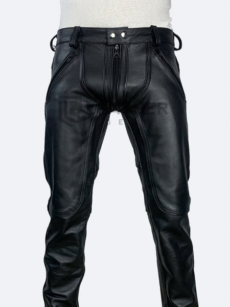 Unleash your dominance in the Gay Leather Pants Black by Leather Gear — engineered for leathermen who live and breathe the gay leather lifestyle. These tight-fitting black leather pants sculpt your body with every wear, featuring sharp black piping and a low-rise cut that frames your form with bold masculine energy.