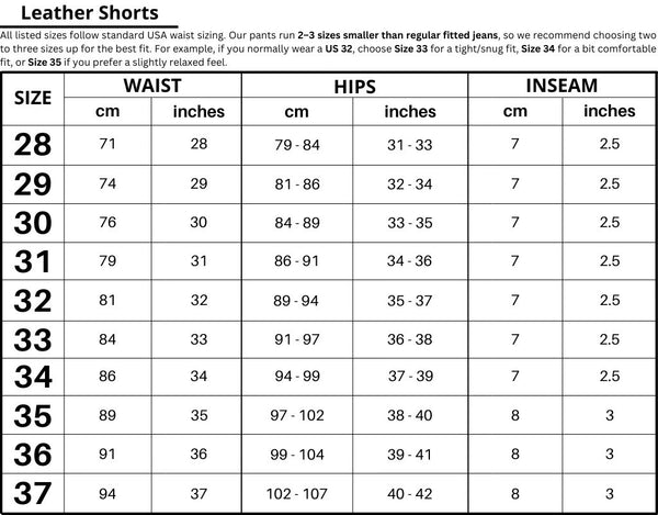 All listed sizes follow standard USA waist sizing. Our pants run 2–3 sizes smaller than regular fitted jeans, so we recommend choosing two to three sizes up for the best fit. For example, if you normally wear a US 32, choose Size 33 for a tight/snug fit, Size 34 for a bit comfortable fit, or Size 35 if you prefer a slightly relaxed feel.